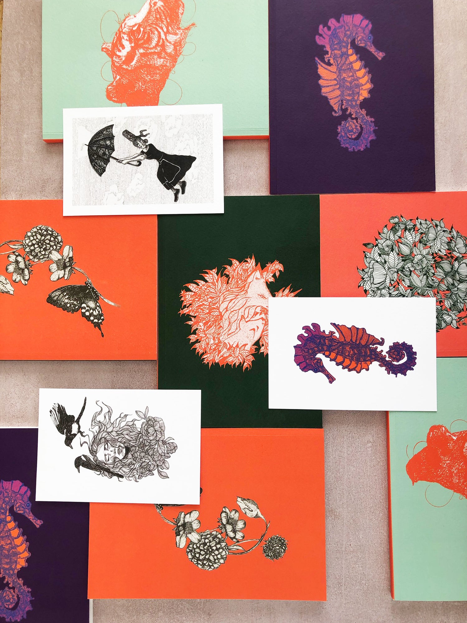 Juste des illustrations nées dans le vent, l'encre et l'instinct. Griffonnée à la main, quand l'inspiration refuse de rester sage. Puis les traits prennent couleur, s'échappent des lignes et deviennent une collection vibrante et indomptée.